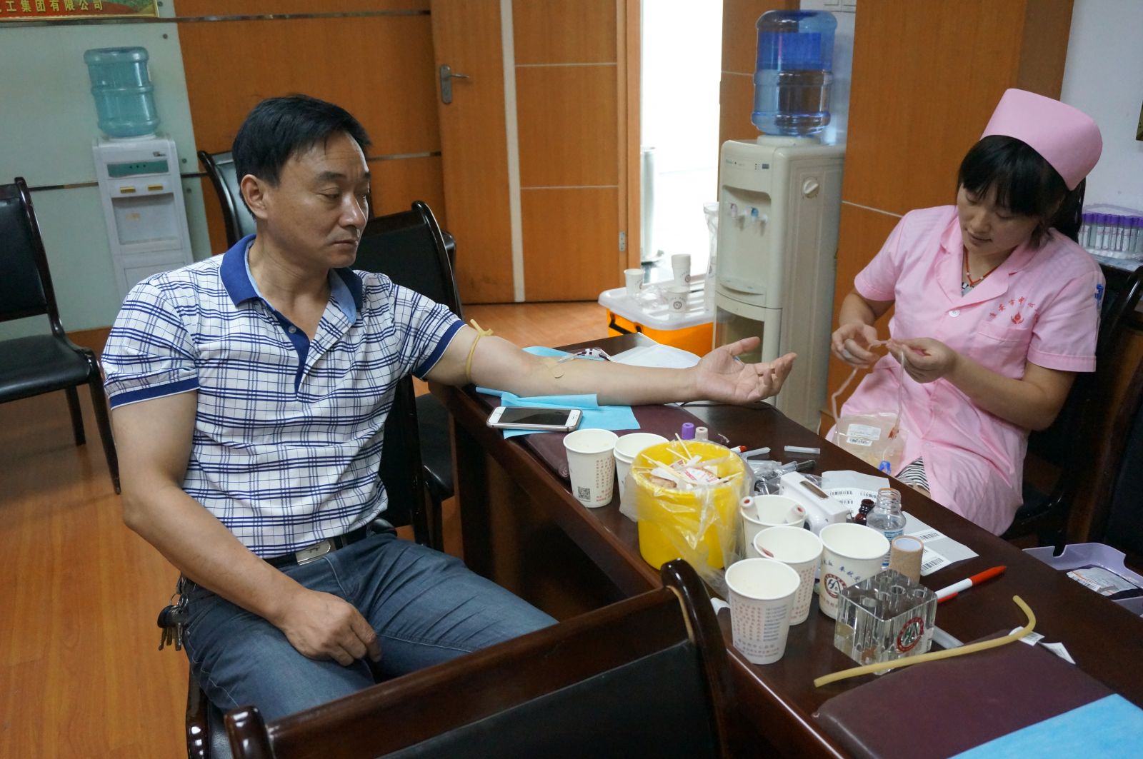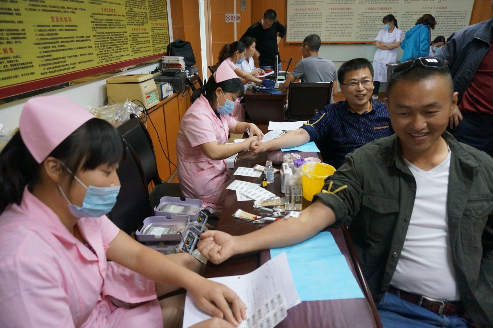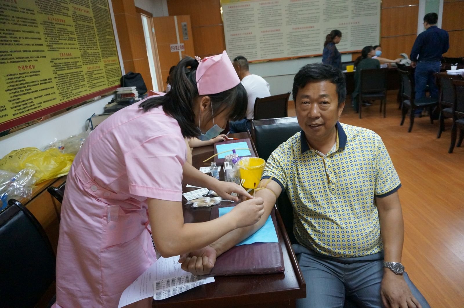 9月22日上午8點,在公司3樓會議室,我公司工會組織廣大職工參與義務獻血活動,在公司領導的帶頭下,共有30余名職工積極參與此次活動。在活動現場,我公司的領導和職工在認真填寫了義務獻血登記表,經過化驗血型、量血壓等程序后,檢查合格者積極配合工作人員,挽起衣袖,勇敢地伸出自己的胳膊。大家都為能夠參加這次活動感到光榮和自豪。