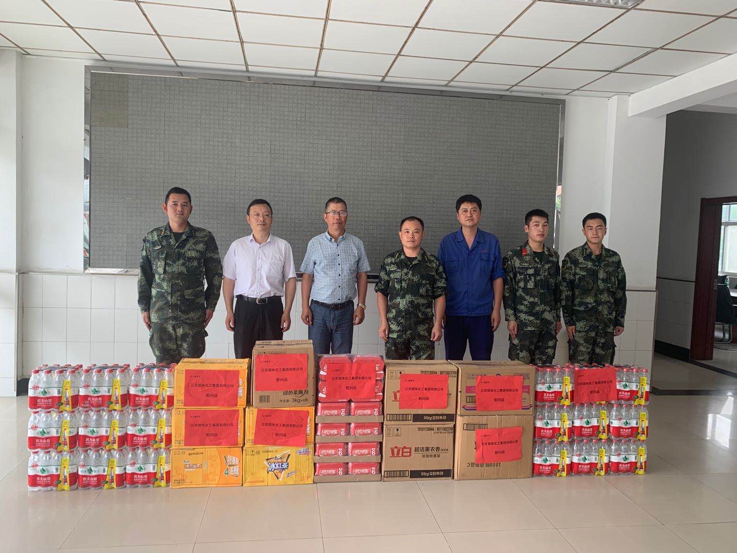軍民和諧魚水情,雙擁在鑄強軍夢。“八一”建軍節來臨之際,7月31日上午,江蘇銀珠化工集團有限公司領導來到洪澤區消防大隊及洪澤區武警中隊開展慰問活動,活動中,該集團為官兵們送去礦泉水、毛巾、洗衣液、方便面等物品,并致以節日的問候,給這個炎熱的夏天增添了些許涼意。