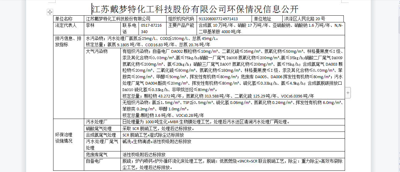 戴夢特環(huán)保情況信息公開